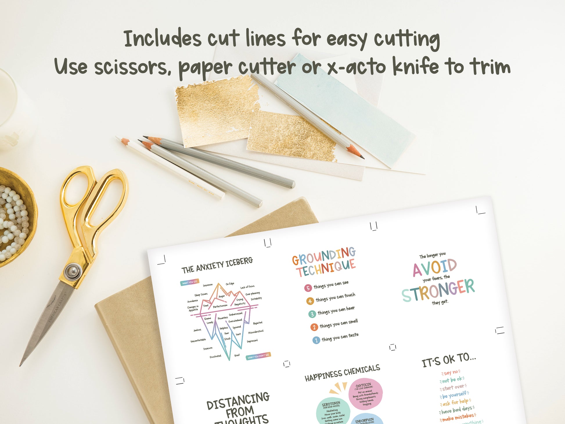 Anxiety can be incredibly difficult to deal with and can cloud our judgment. These flash cards can help you cope, ground yourself and provide relief when feeling overwhelmed. Challenge your negative thoughts, practice mindfulness, use breathing exercises and use skills from Cognitive Behavioral Therapy as well as Dialectical Behavior Therapy.